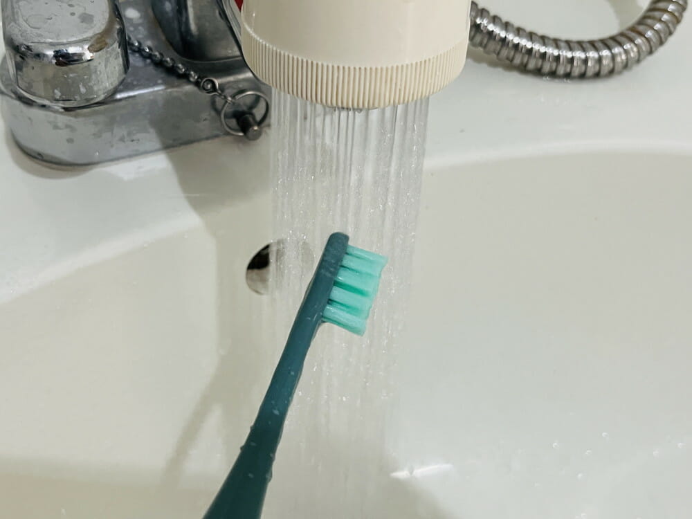 また、歯ブラシ自体が約99gと非常に軽いおかげで、長時間持ち続けても腕が疲れることはなかった。IPX7等級の高度な防水規格に対応しているおかげで、風呂場でシャワーを浴びながらでも安心して使用できた。