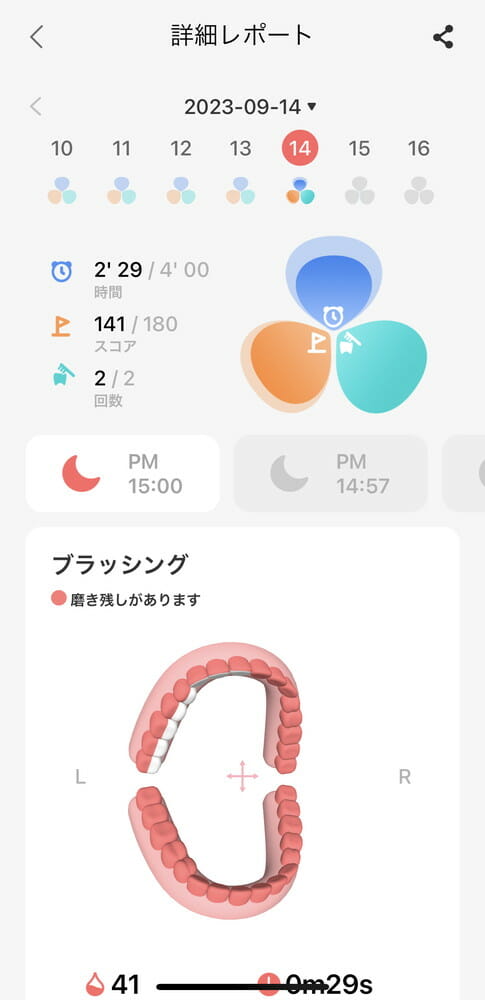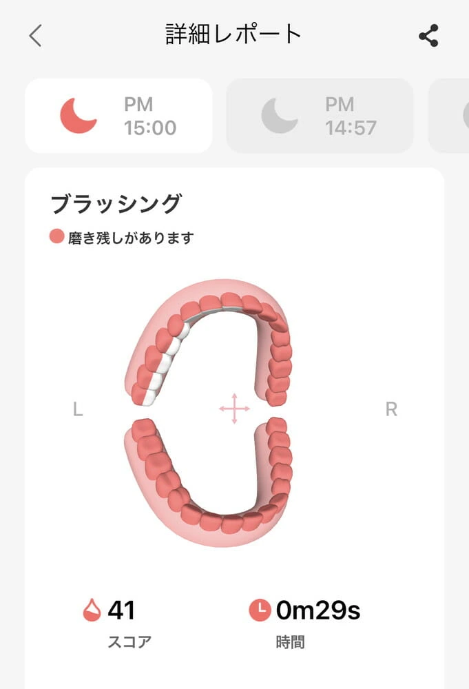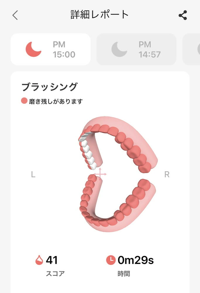 また、歯磨きの結果はアプリと自動的に同期され、スマホ上でより詳細なデータを確認できる。