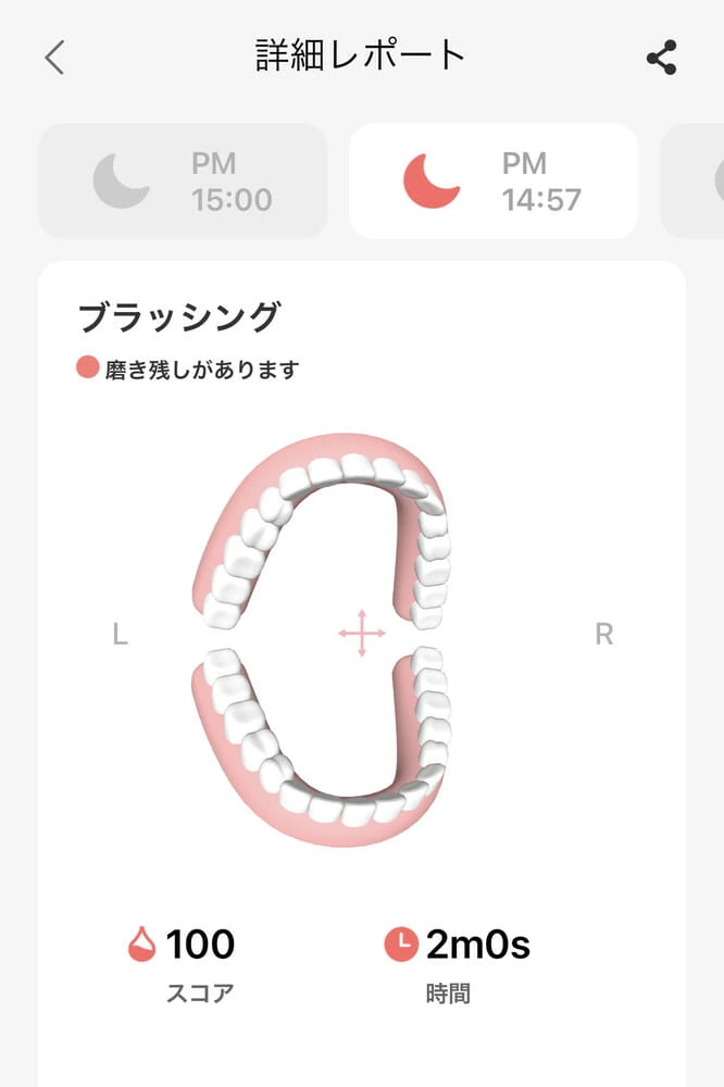 歯磨きの質もアプリ上で確認でき、今後の反省に活かすことができる。