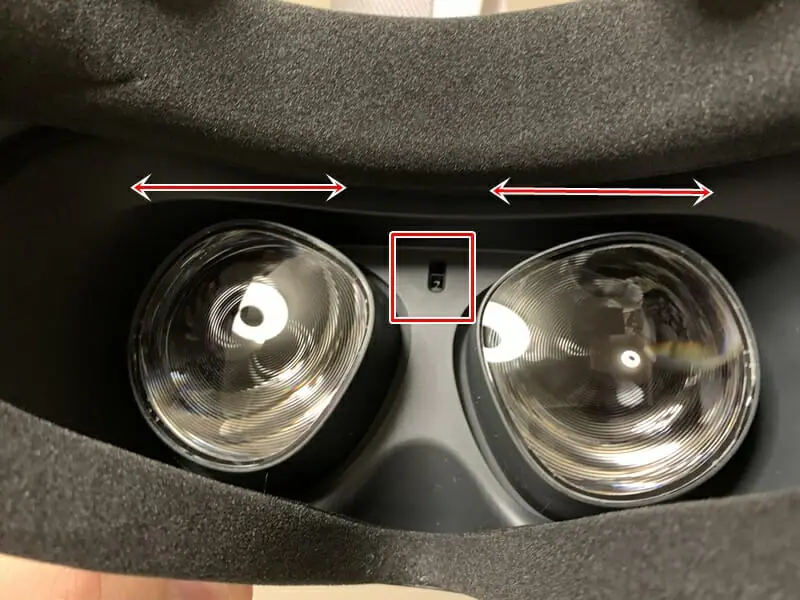 ▼両目レンズは左右に幅を調節することが可能。自身の目の幅に合わせて、最もピントの合う部分に調節しよう。また中央には光感知センサーが搭載。
