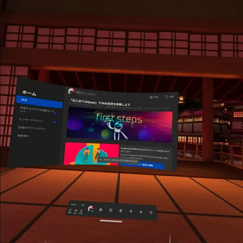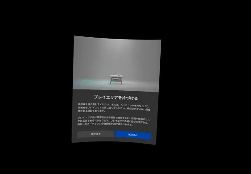 Quest2を起動すると、プレイエリア(VRで遊ぶ範囲)の設定が始まる。