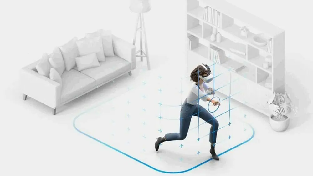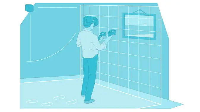 ガーディアン境界線を設定しておけば、もし境界線から逸脱しそうになった場合、VR空間内に仮想壁が表示され、境界線を越えそうになっていることが通知される。