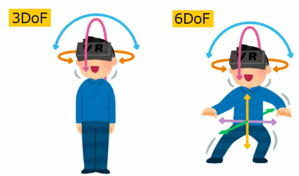 首の動きしか認識できなかった旧モデルのOculus Go(3DoF)とは異なり、VR空間内に体の動きまで同期させることが出来る。