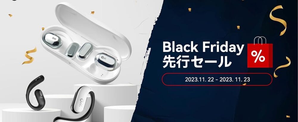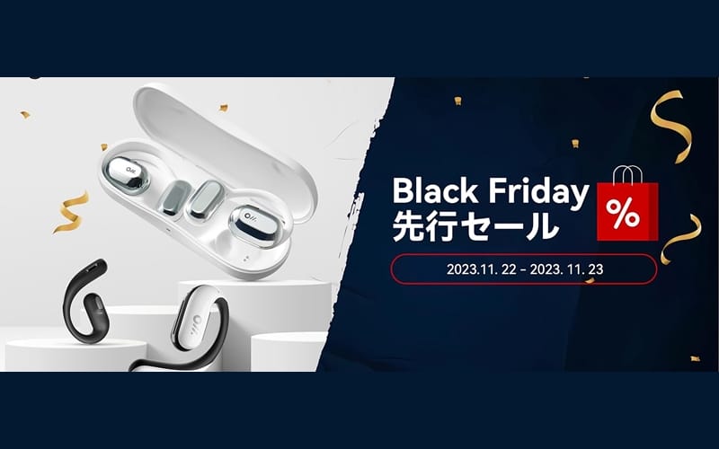 数多くの高性能イヤホンを手掛ける「Oladance」の人気オープンイヤー型イヤホン2機種「Oladance OWS1」「Oladance OWS2」について、2023年のAmazonブラックフライデーセールにおいて、通常価格から30%OFFの割引が適用された特価で購入することができます。