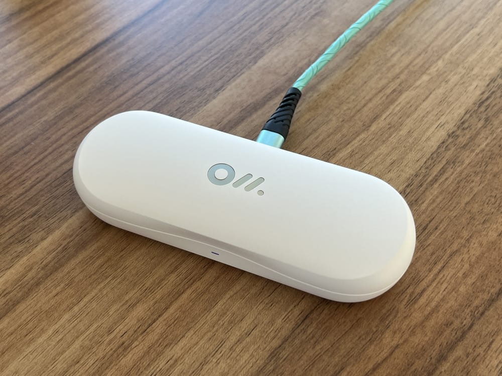 製品にはイヤホンを収納できるケースが付属する。なお、付属のケースはバッテリーを内蔵しておらず、充電の際は、ケースにしまった状態でType-Cケーブルで電源に接続する必要がある。