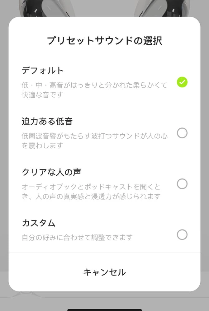 ▼プリセットサウンドが用意されており、好みに応じてサウンドの質を切り替えることが可能。