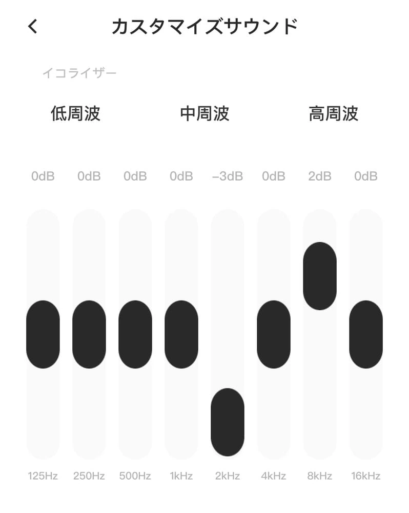 ▼イコライザーで、より詳細にサウンドをカスタマイズすることもできる。
