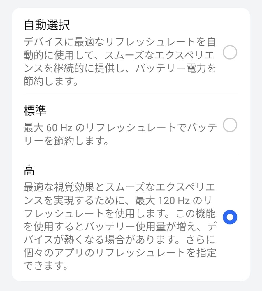 ▼リフレッシュレートは設定アプリより切り替えることが出来る。