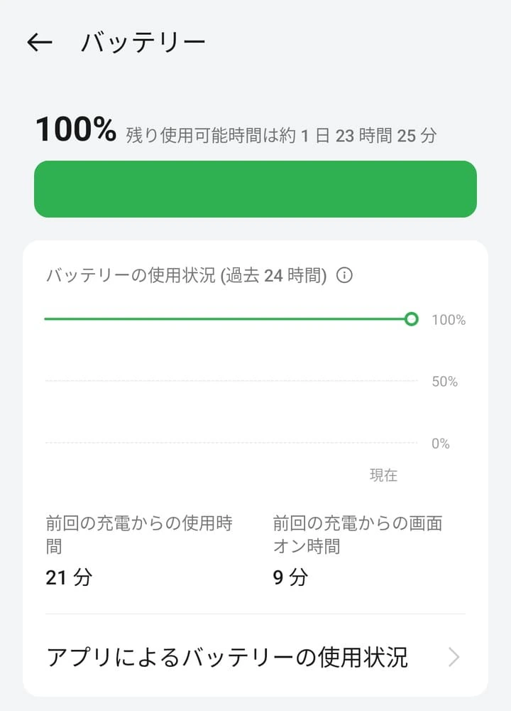 実際に満充電の状態から3時間ほどゲームアプリを連続して遊んでみたところ、20%ほどしかバッテリーが減っていなかった。ただし画質などのパフォーマンスに影響を及ぼす設定によっては、バッテリー消費速度は大きく変化する。