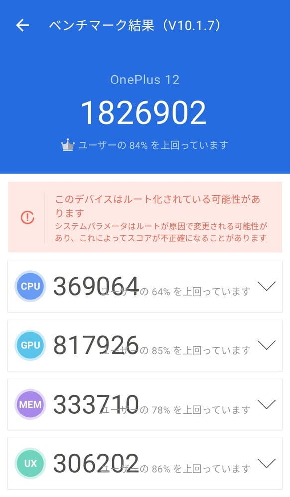 以上の通り、182万点超えのAnTuTuスコアを記録する、パワフルな高性能スマホとなっている。