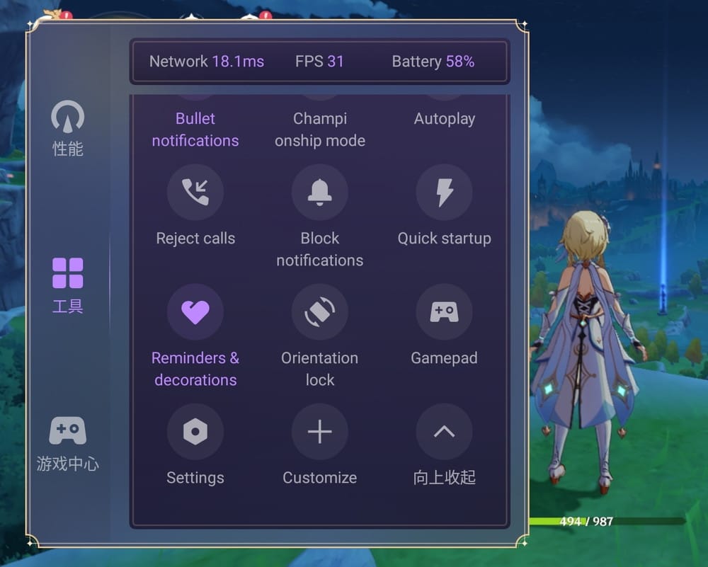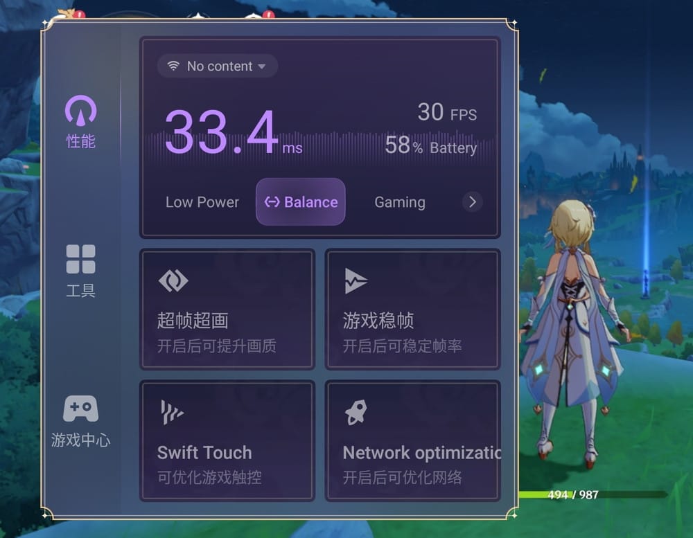 なお、ゲームアプリ起動時にディスプレイ左端をスワイプすると、ゲーミングに適した各種機能を利用できる。