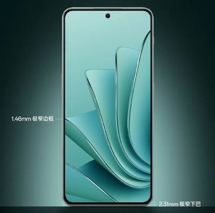 OnePlus Ace 2Vは廉価モデルらしからぬ狭額縁デザインで、横は1.46mm、下部は2.31mmのベゼルとなっています。
