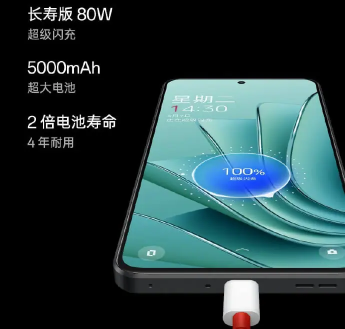 OnePlus Ace 2Vは80Wでの急速充電に対応。