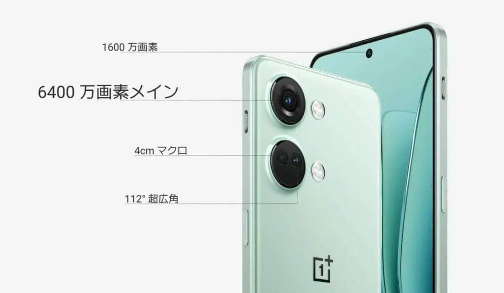 64MPメインカメラ + 8MP超広角 + 2MPマクロというトリプルカメラです。