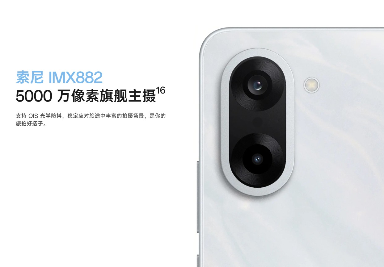前面に16MP(f/2.4)フロントカメラを搭載。背面には50MP(f/1.8)広角 Sony IMX882 + 2MP(f/2.4)深度の2眼構成リアカメラを搭載。優れた写真撮影性能を実現している。