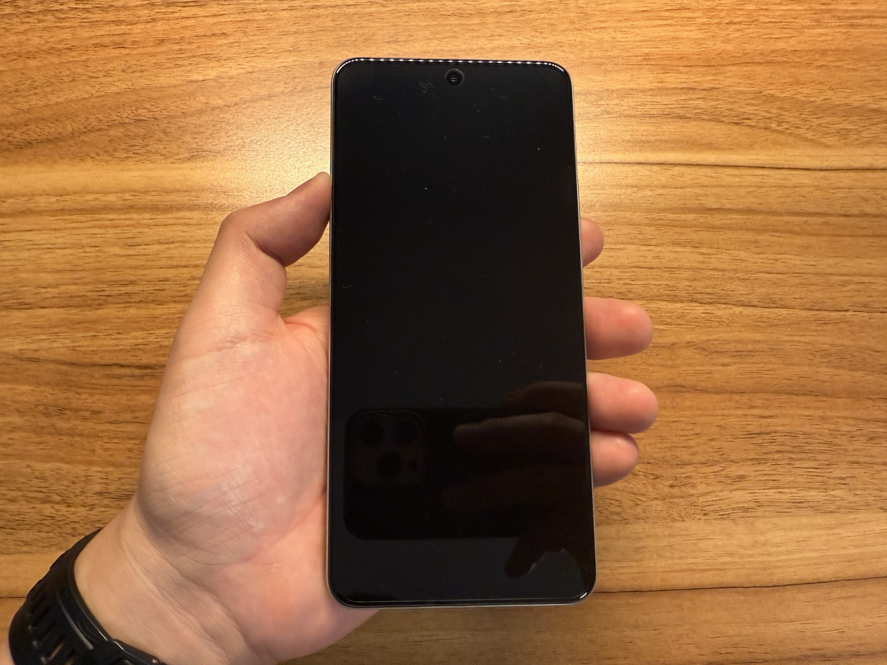 OnePlus Ace 5 Racingを手に持っている(正面アングル)