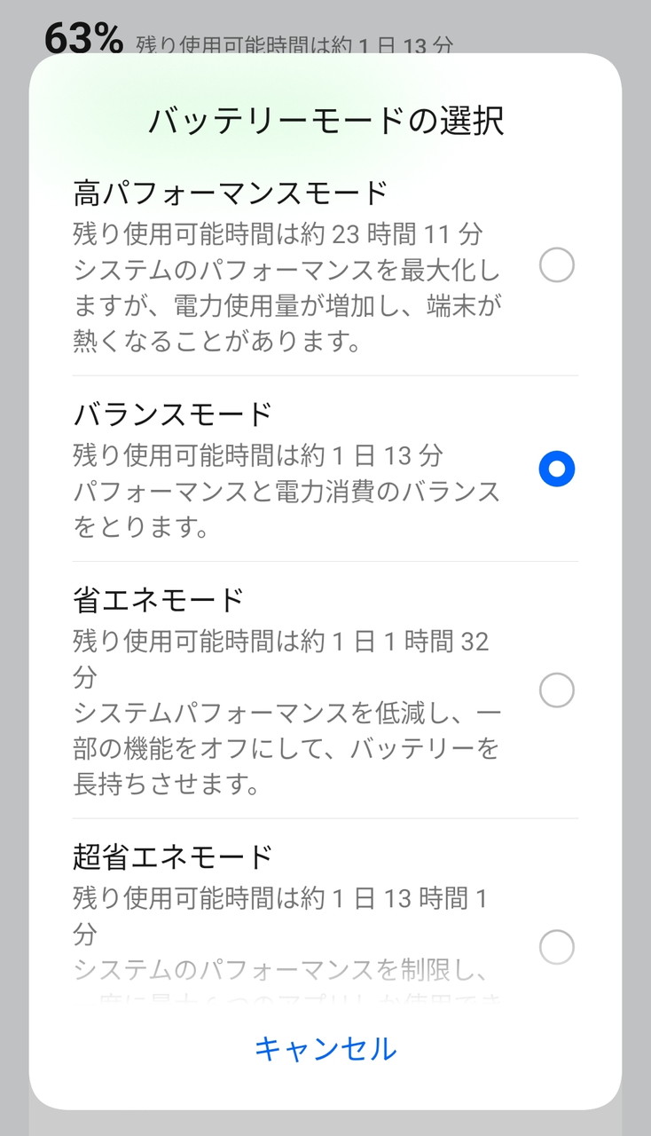 ▼できるだけ長持ちさせたい場合は、バッテリーモードを切り替えると良い。