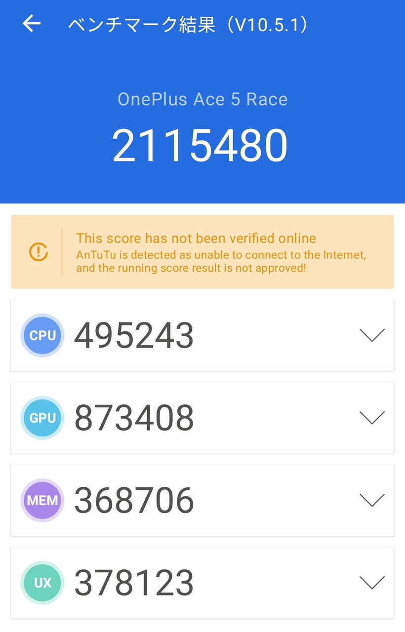 『OnePlus Ace 5 Racing』レビュー、3万円台でAnTuTu211万点台、Dimensity 9400e搭載の高コスパスマホ