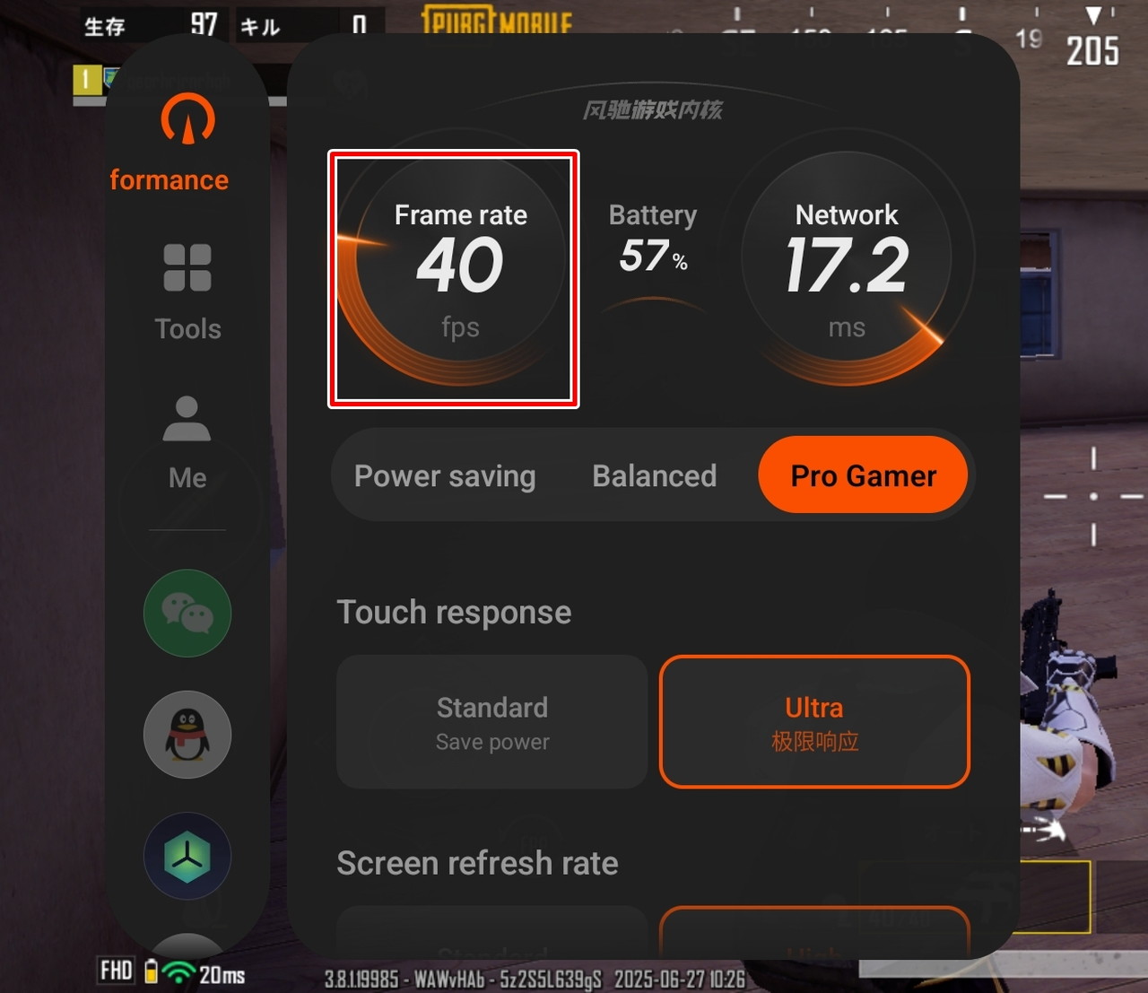 OnePlus Ace 5 Racingのゲーミングウィンドウ1