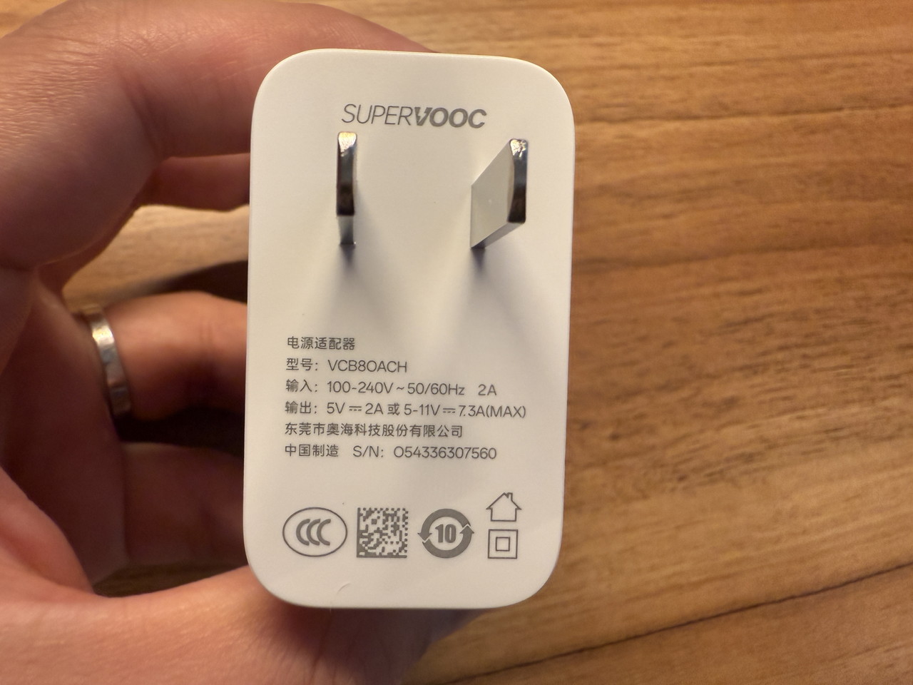OnePlus Ace 5 Racingの電源アダプタの仕様表記