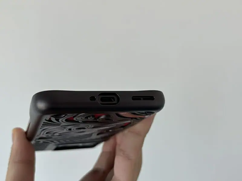 以上の通り、電源ボタンおよび音量調節ボタンには胡桃カラーのアクセントが入っている。
