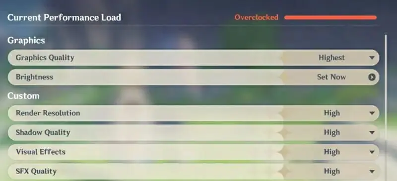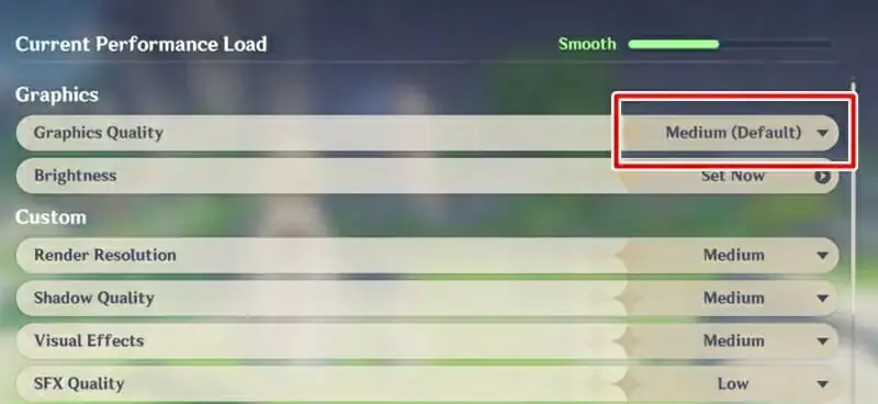 ▼画質設定はデフォルト状態で "" に設定されており、デバイス負荷は "スムーズ" の状態。