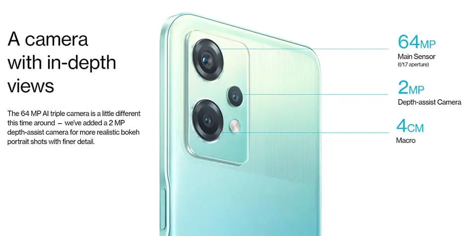 OnePlus Nord CE 2 Lite 5Gと異なり50MPトリプルカメラで、メインカメラは数々のハイエンドスマホに採用されてきたSONY IMX766でOIS 光学式手ぶれ補正に対応しています。