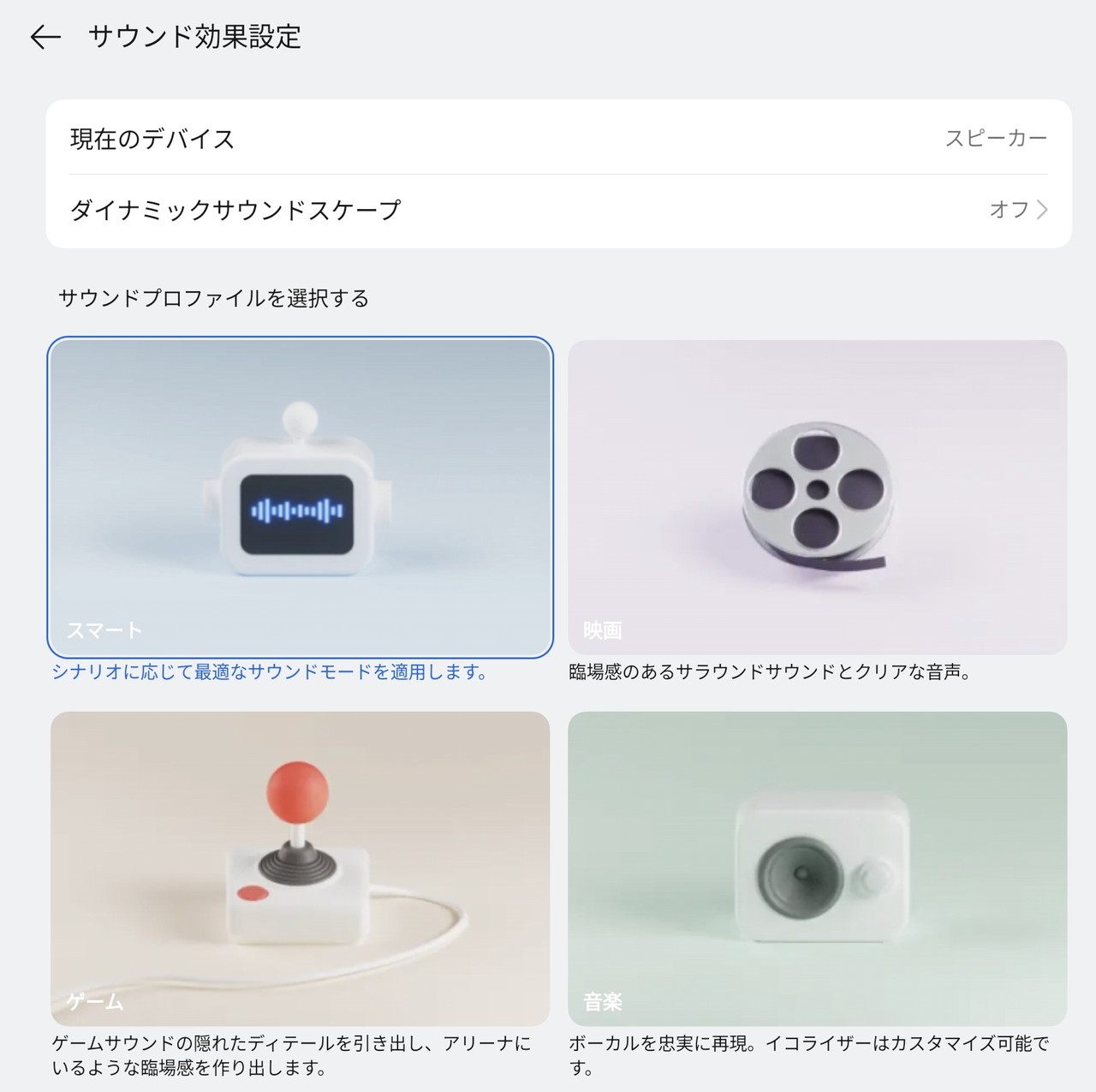 ▼なお、設定よりサウンド効果のプロファイルを変更することも可能だ。