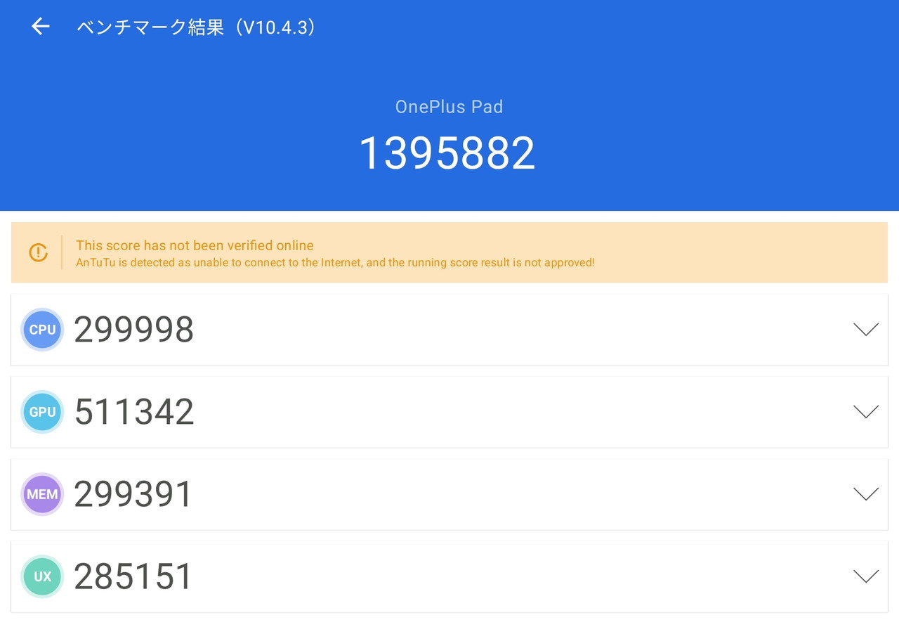 本機について、スマホ・タブレット端末の性能を測ることのできる『AnTuTuベンチマークテスト』を実施してみた。
