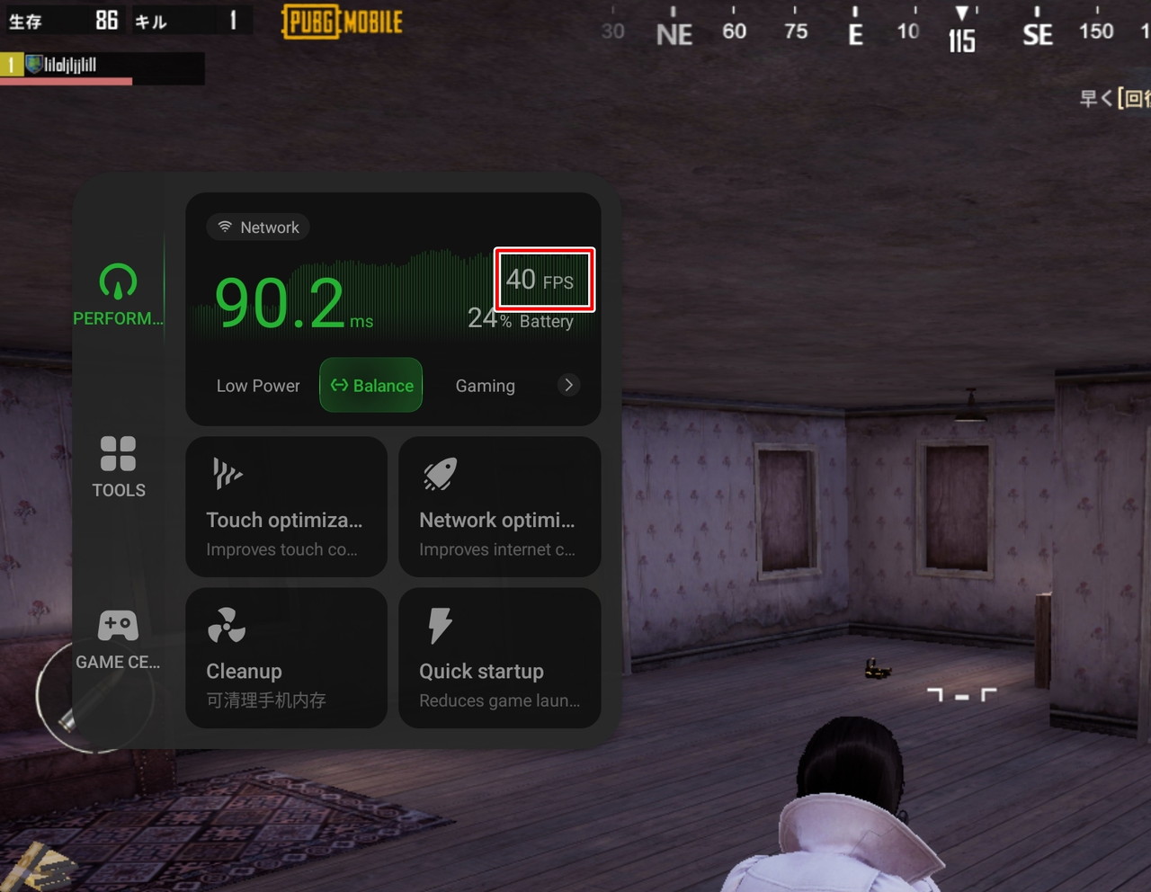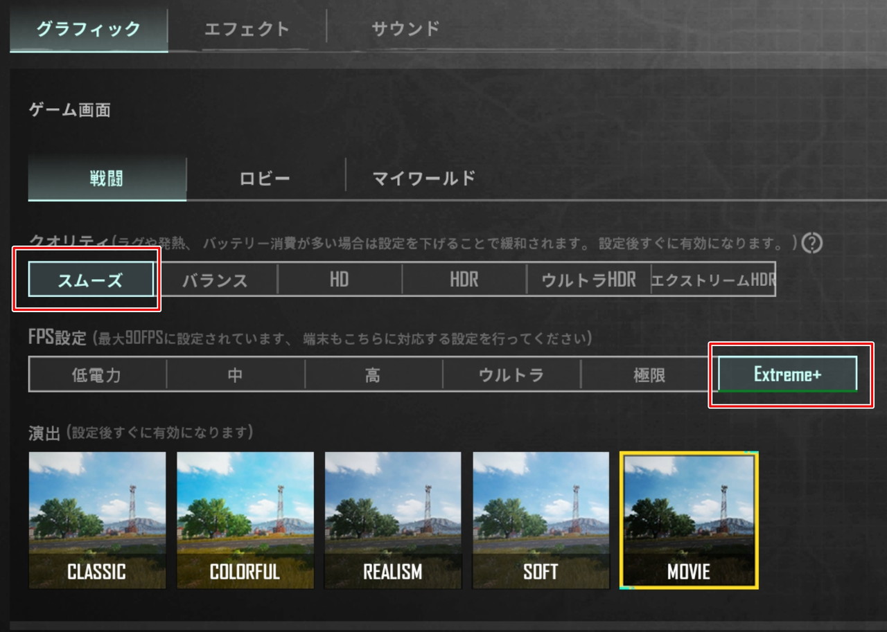 ▼画質設定を「スムーズ」に、フレーム設定を「Ultra Extreme」に設定した場合は、上限の90fps前後でプレイすることが可能であった。