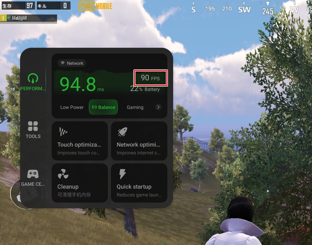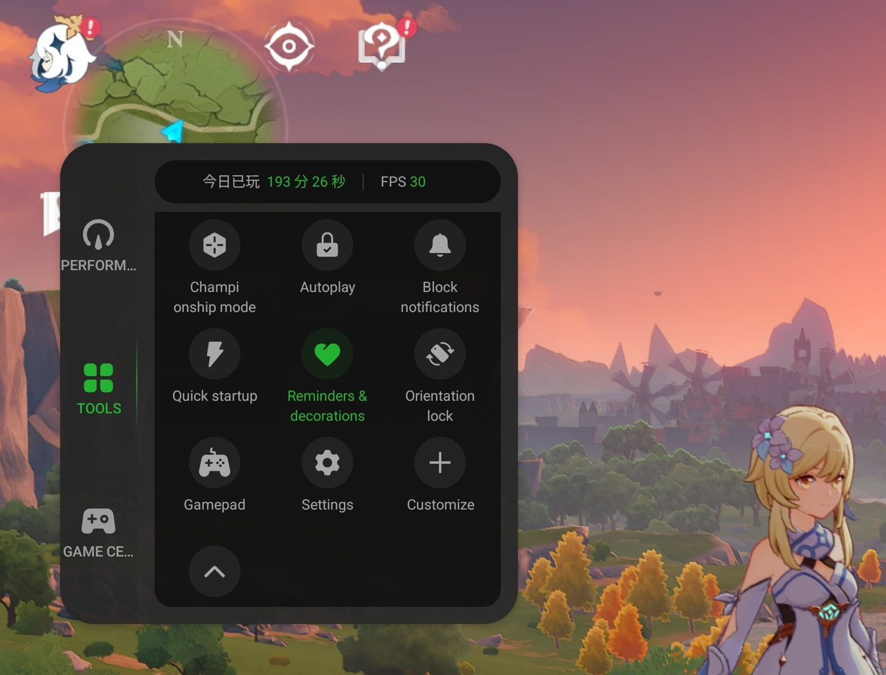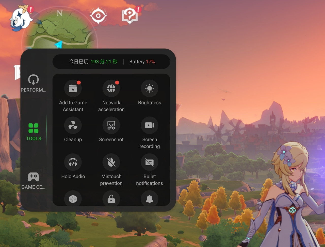 ゲームアプリプレイ時に画面縁をスワイプすると、ゲーミング向けの様々な機能が用意されたウィンドウが出現する。