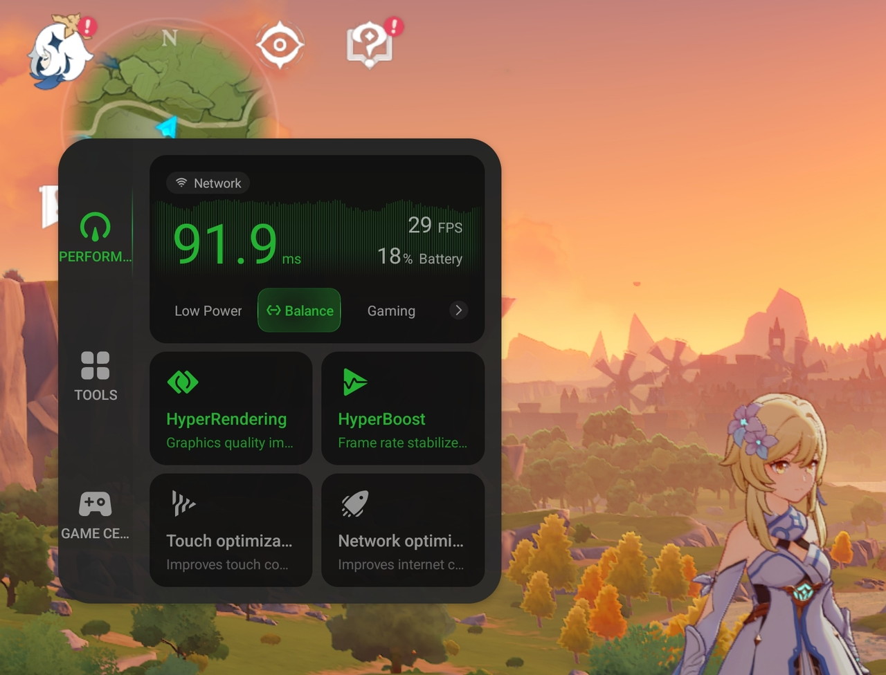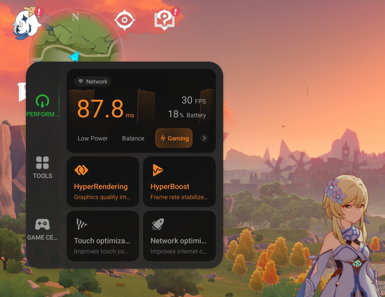 『原神』クラスの激重ゲームでもこれだけ快適に遊べるのであれば、大抵のゲームアプリはスムーズに動作するだろう。