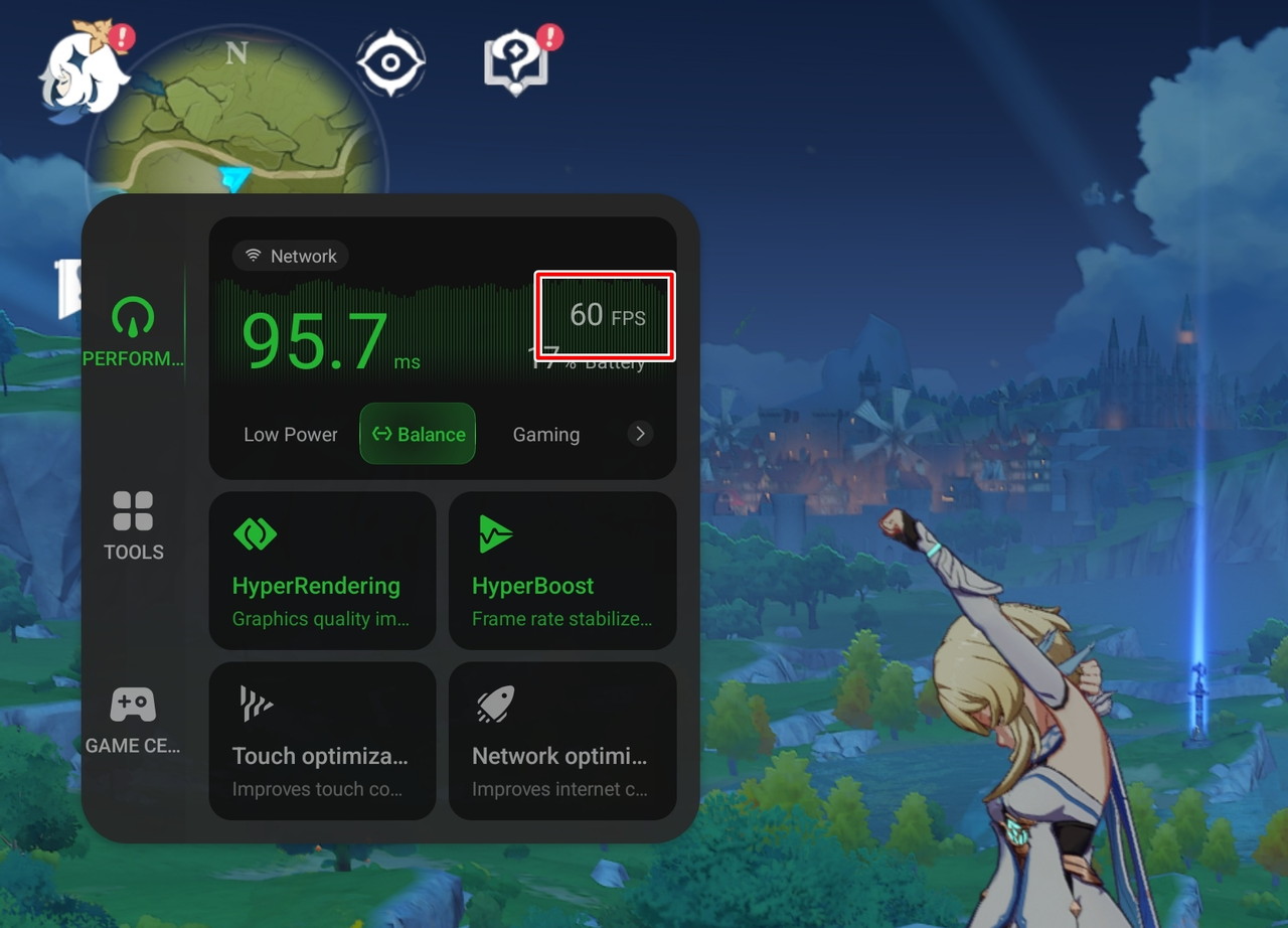 ▼ "最高" 画質設定でも、60fps前後安定の非常にスムーズなパフォーマンスで原神をプレイすることができた。