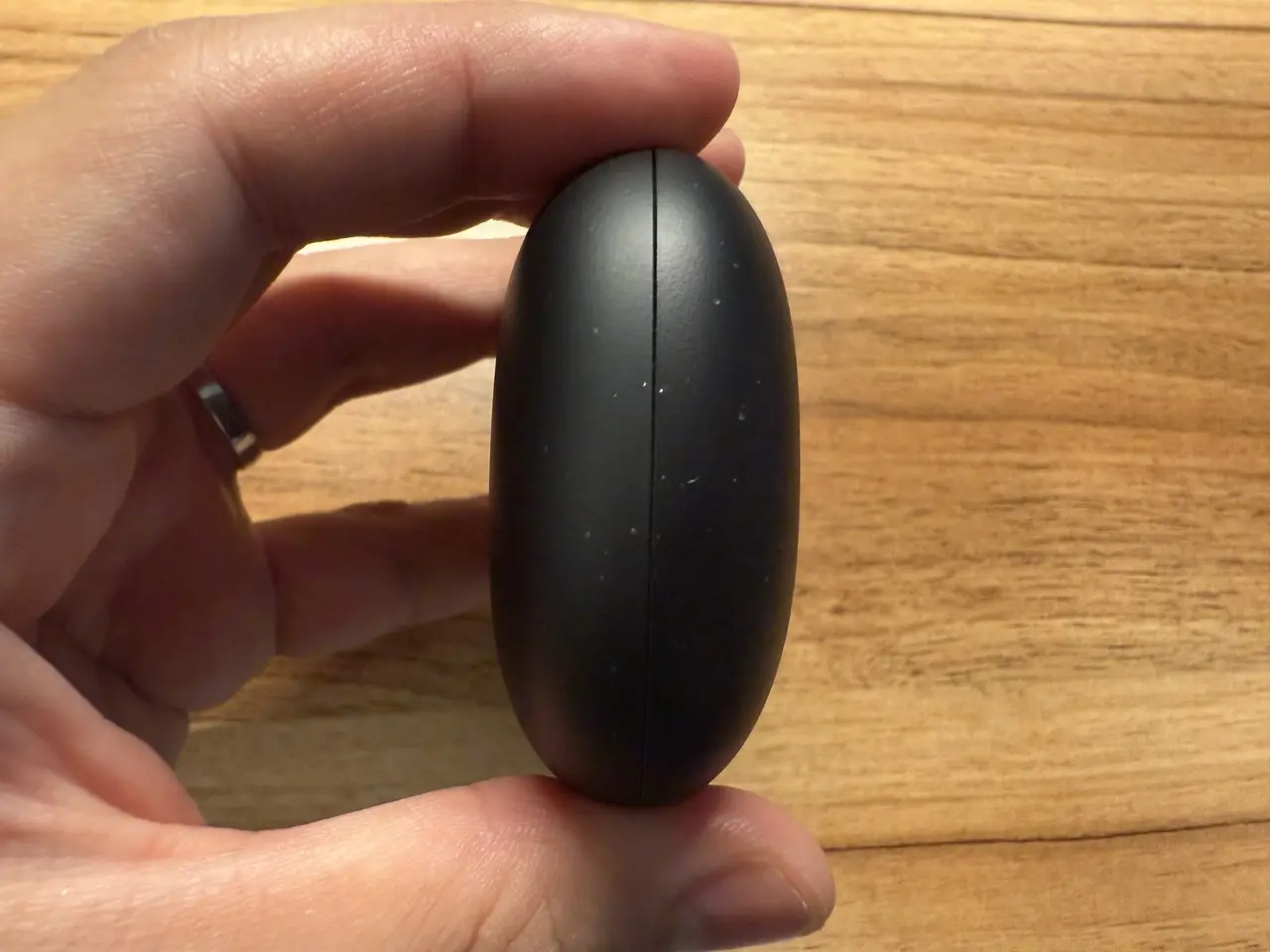 充電ケースは手のひらに収まるほどのコンパクトサイズ。