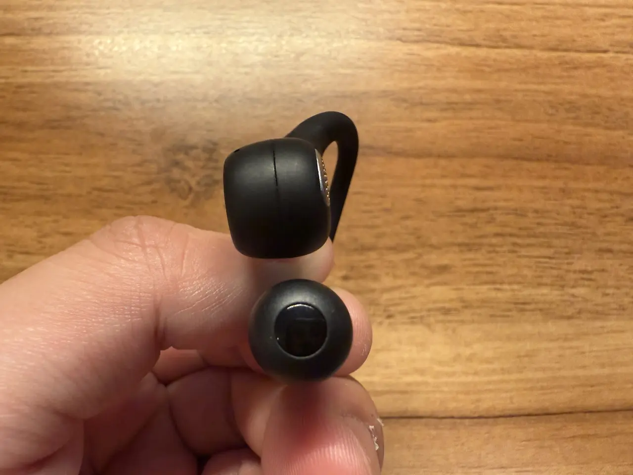 耳穴の上に "当たる" 感じであり、カナル型やインイヤー型と比べると、耳穴を塞ぐ不快感や圧迫感は皆無。長時間装着し続けても疲れにくいです