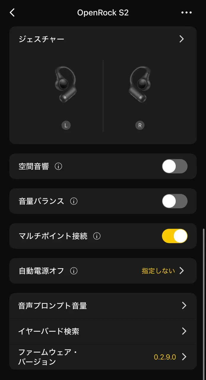 なお、アプリから「空間音響モード」をオンにすると、音場に立体感が加わり臨場感が増します。ただし同時に、高音がやや刺さる印象があり、楽曲によっては好みが分かれると感じました。