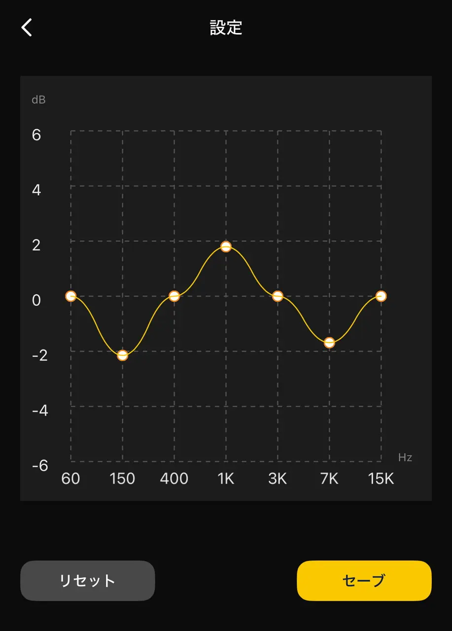 アプリ上では、数種類のイコライザープリセットを利用できます。