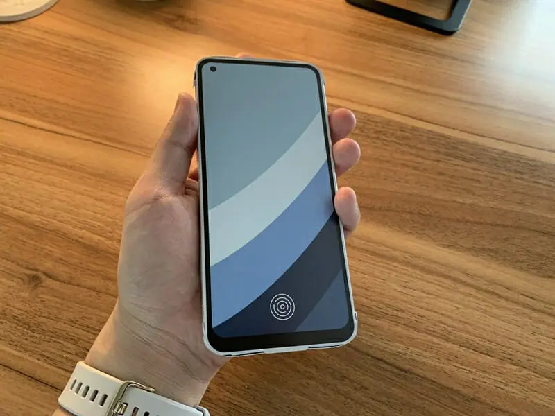 ディスプレイ下部には指紋マークのようなものが印字されており、これはおそらくディスプレイ内に指紋認証センサーが搭載されることを表しているものと思われます。
