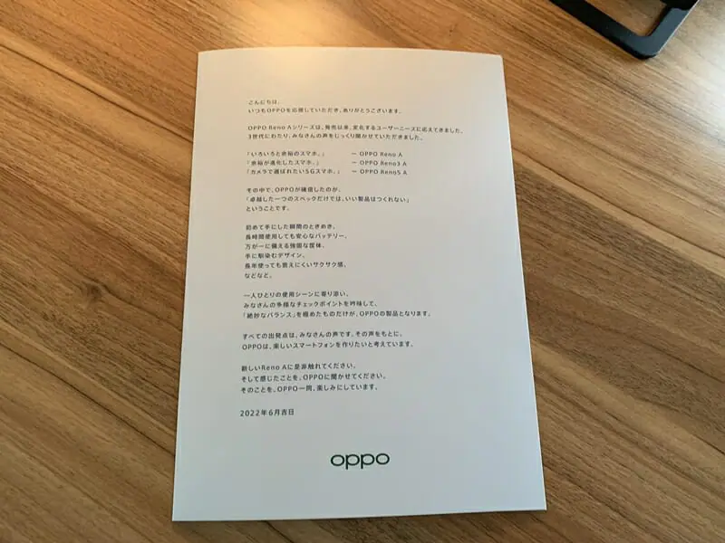 届いたペーパークラフトには、OPPOからのメッセージも一緒に記載されていました。