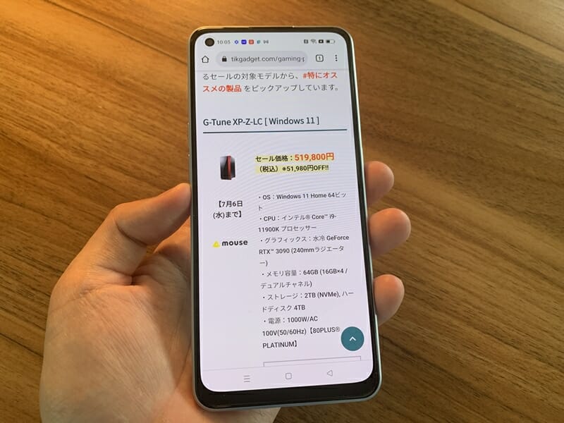 ▼ウェブサイト閲覧時も、細かい文字まで明瞭に表示され見やすい。ページスクロールもなめらかで心地よい。