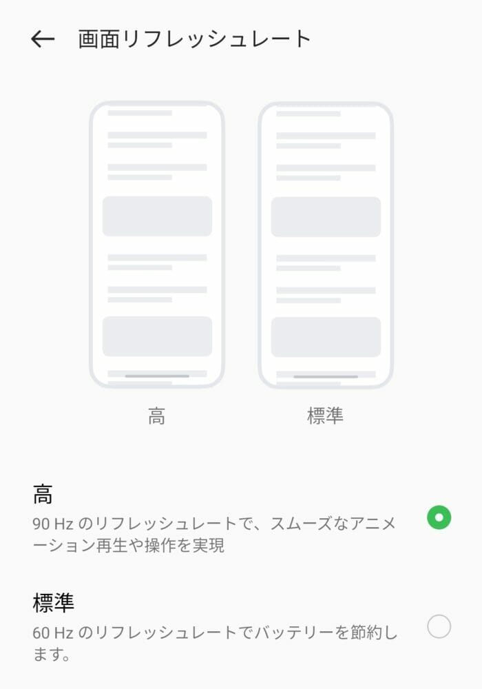 ▼リフレッシュレートは設定アプリより切り替えることが出来る。