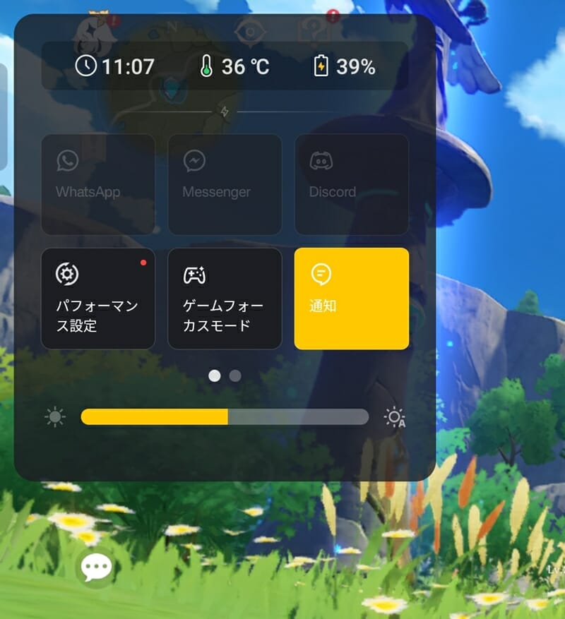 ▼ゲームプレイ中に表示されるアイコンをスワイプすることで、フォーカスモードやパフォーマンス切替などを利用できる。