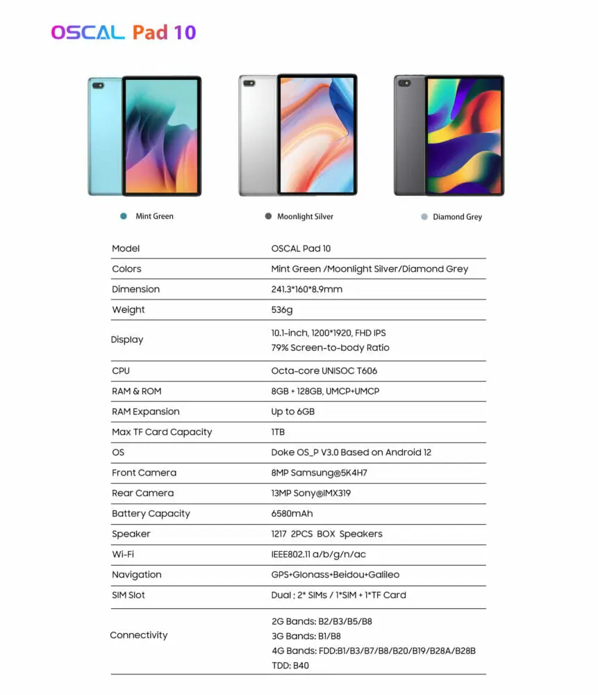 『Oscal Pad 10』の仕様表は以下の通りだ。