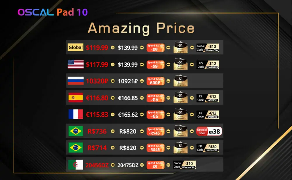 『Oscal Pad 10』の通常価格は259.99USDのところ、AliExpressにおいて日本時間 2023年1月9日(月)~13日(金)までの期間限定でわずか129.99USDという特価で購入できるセールが実施される。