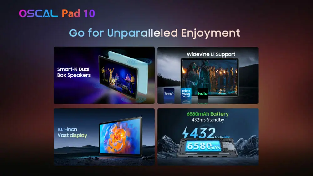 また、Oscal Pad 10は6,580mAhの大容量バッテリーを搭載している。満充電状態であれば、外出中に1 本の映画を見た後でもバッテリー切れを心配する必要はないだろう。