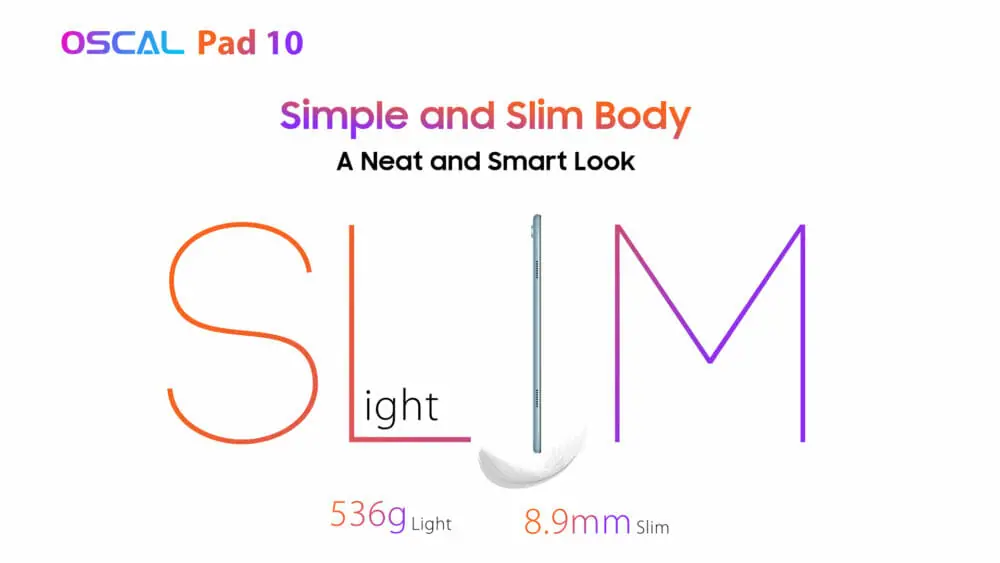Oscal Pad 10は8.9mmの超スリム & 536g軽量ボディとなっており、ラクラク掴むことができ、どこにでも簡単に持ち運部ことが可能。ミント グリーン、ムーンライト シルバー、ダイヤモンド グレーの 3色のカラーバリエーションが用意された、非常に洗練されたデザインとなっている。
