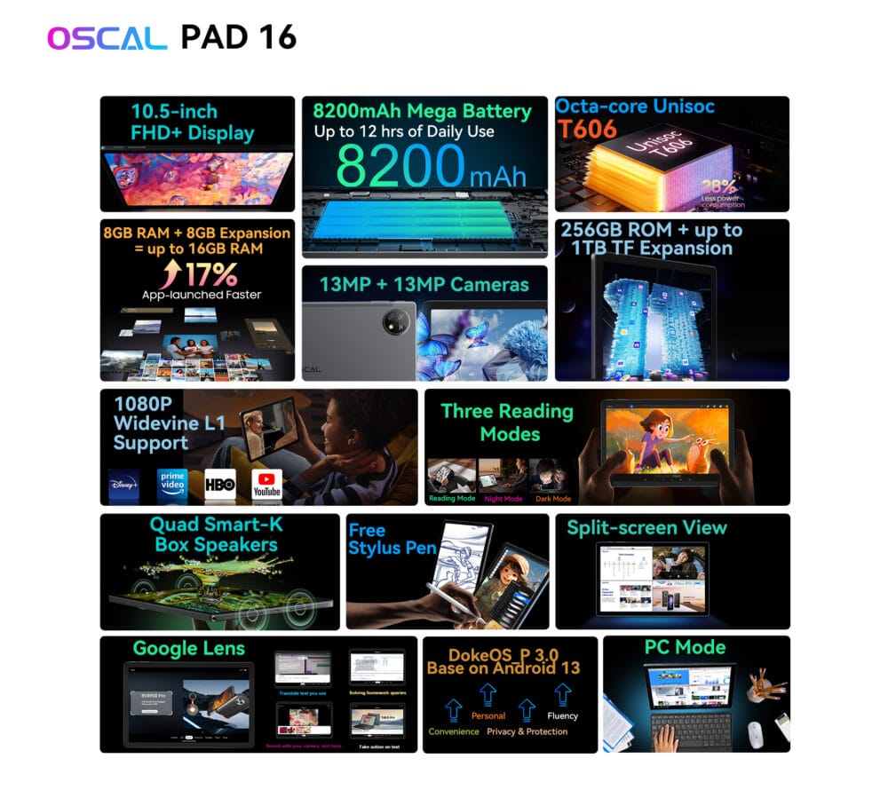 世界市場、特にヨーロッパ、アフリカ、アジアで多くのモバイルデバイスをリリースしてきたBlackviewの姉妹ブランドであるOSCALは、同社の最新タブレット『OSCAL Pad 16』を発表した。