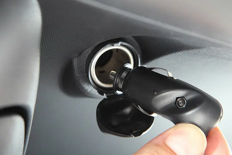 シガーソケット出力ポートはキャップで保護されている。