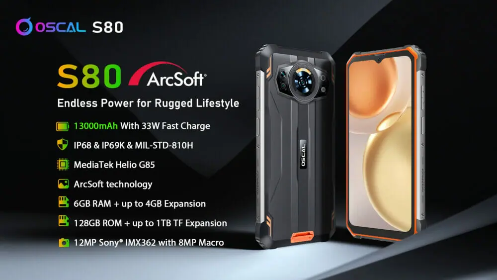 『Oscal S80』発売 | 防水防塵・耐衝撃性能に優れた13,000mAh大容量バッテリー搭載のタフネススマホ