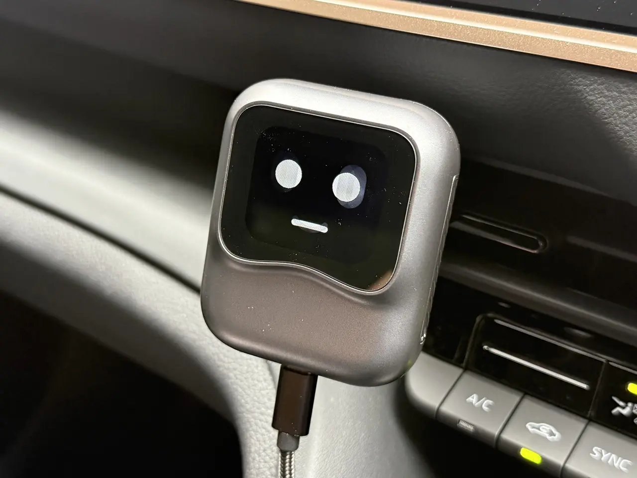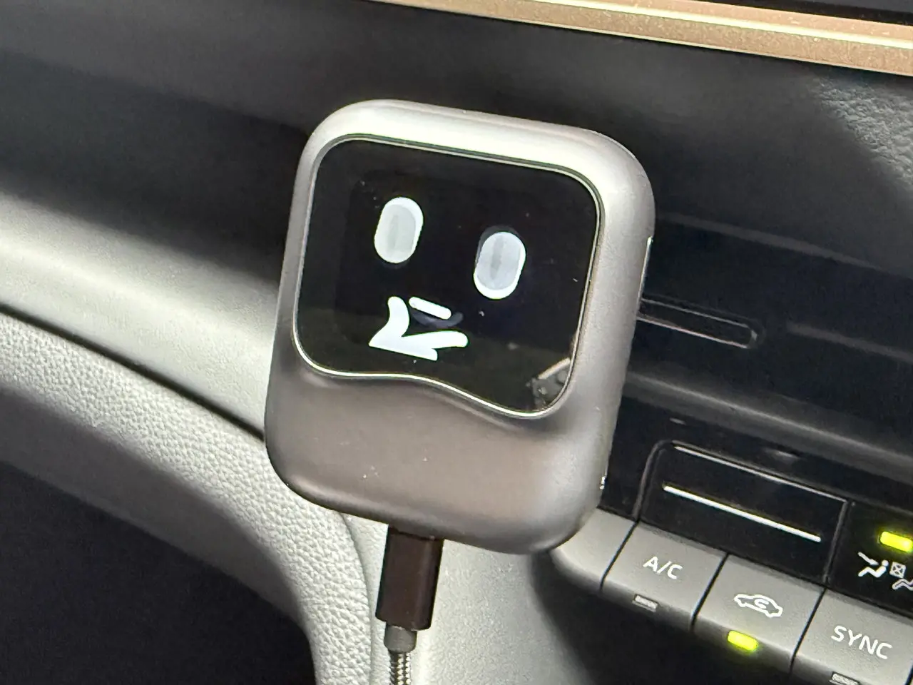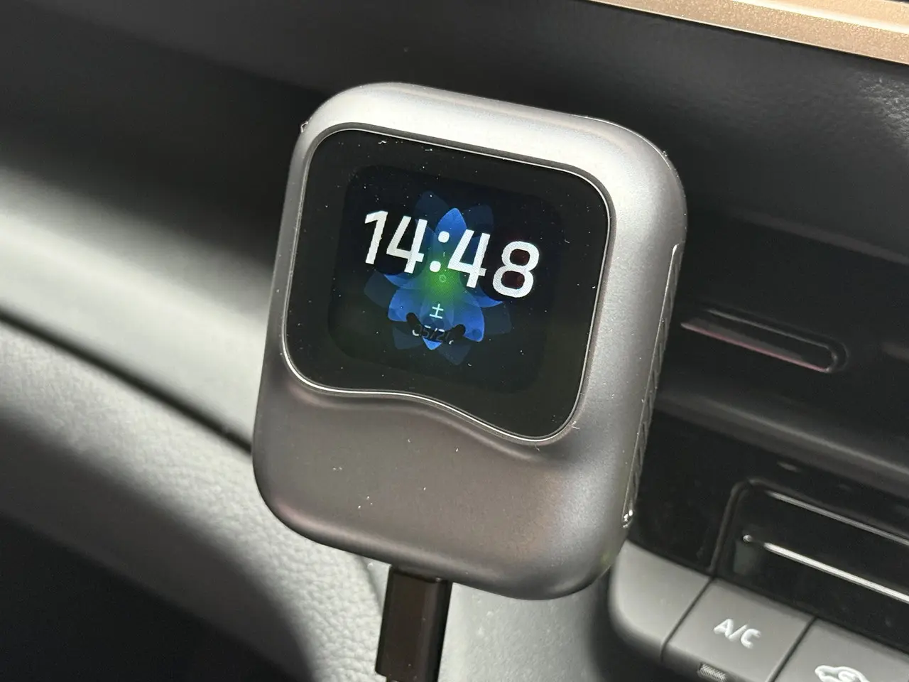 コンパクトかつ軽量な筐体デザインのおかげで、エアコンルーバーに取り付けても邪魔にならない。